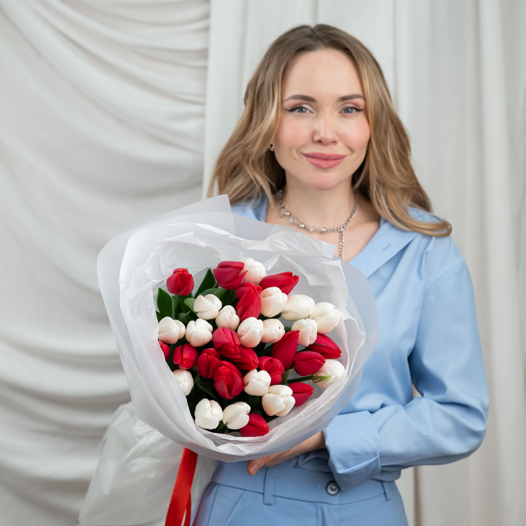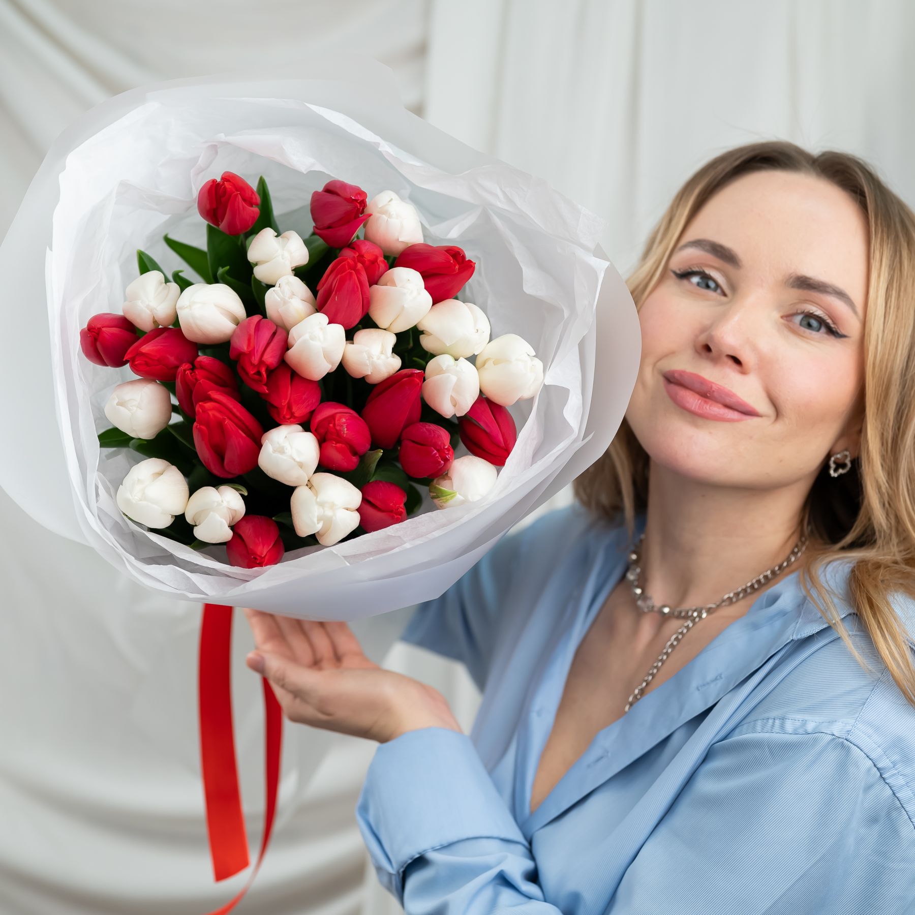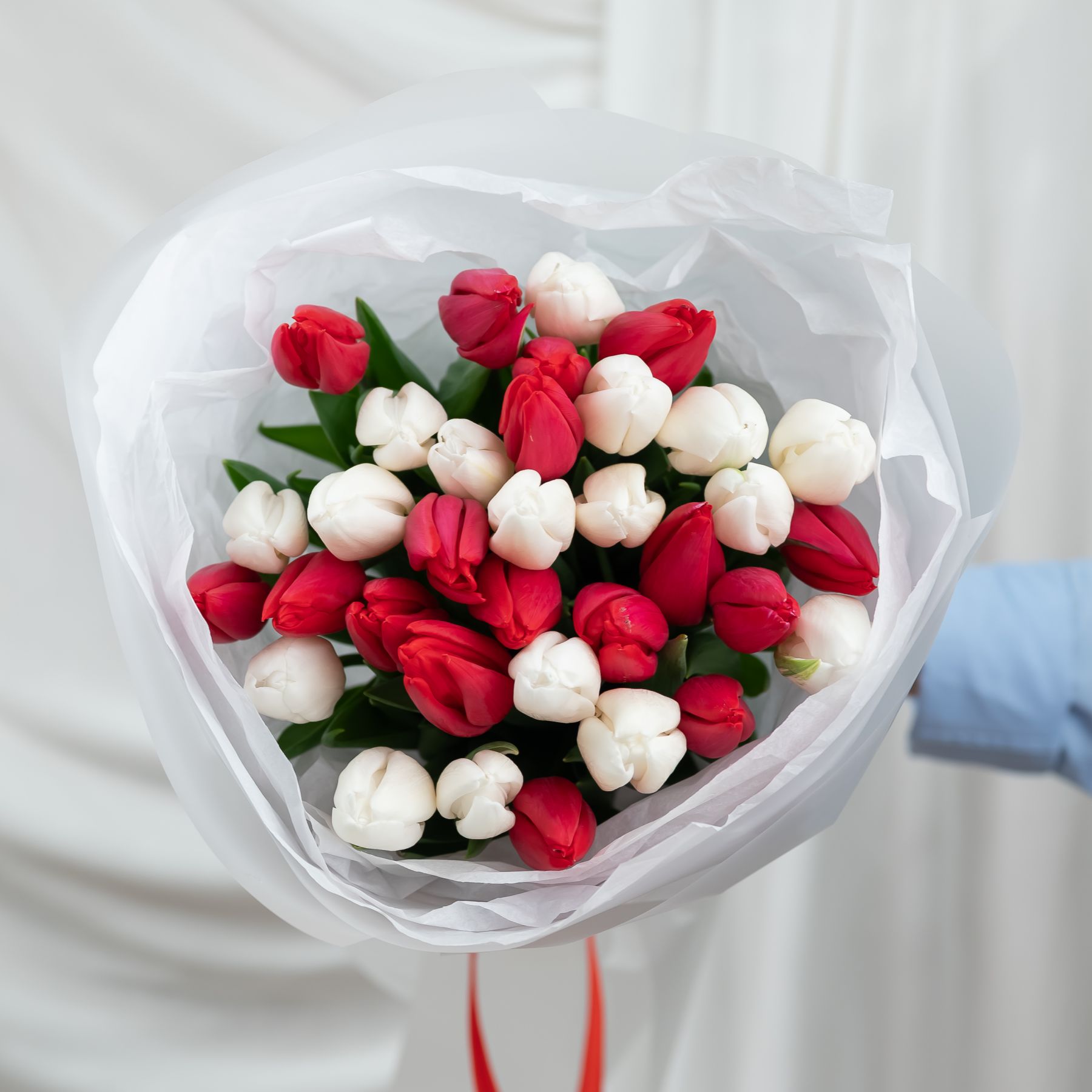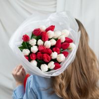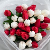 Красные и белые тюльпаны в упаковке