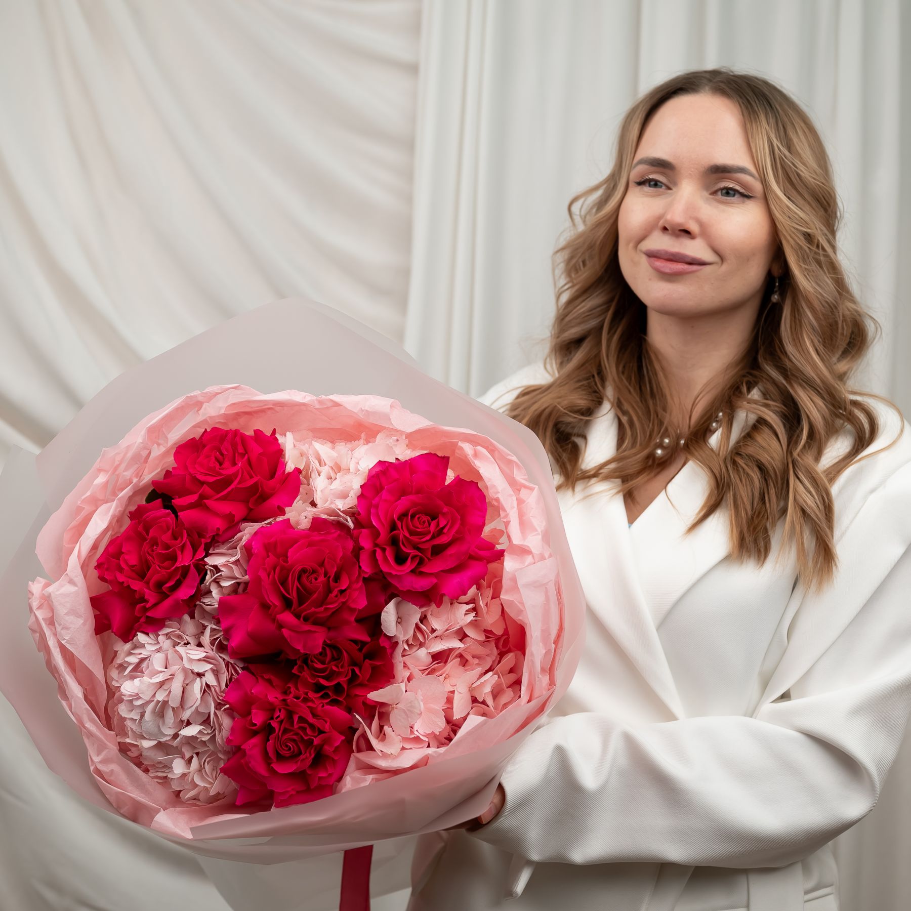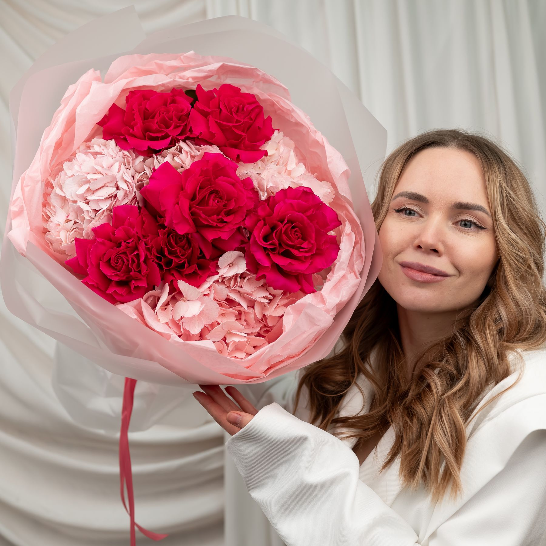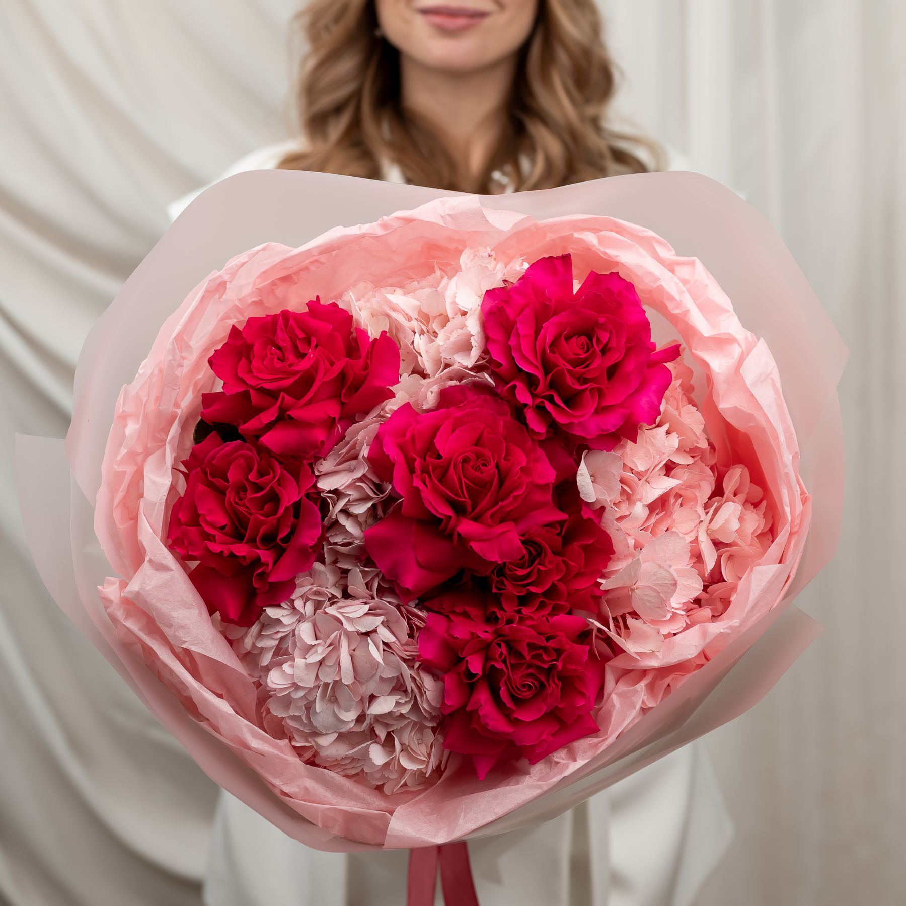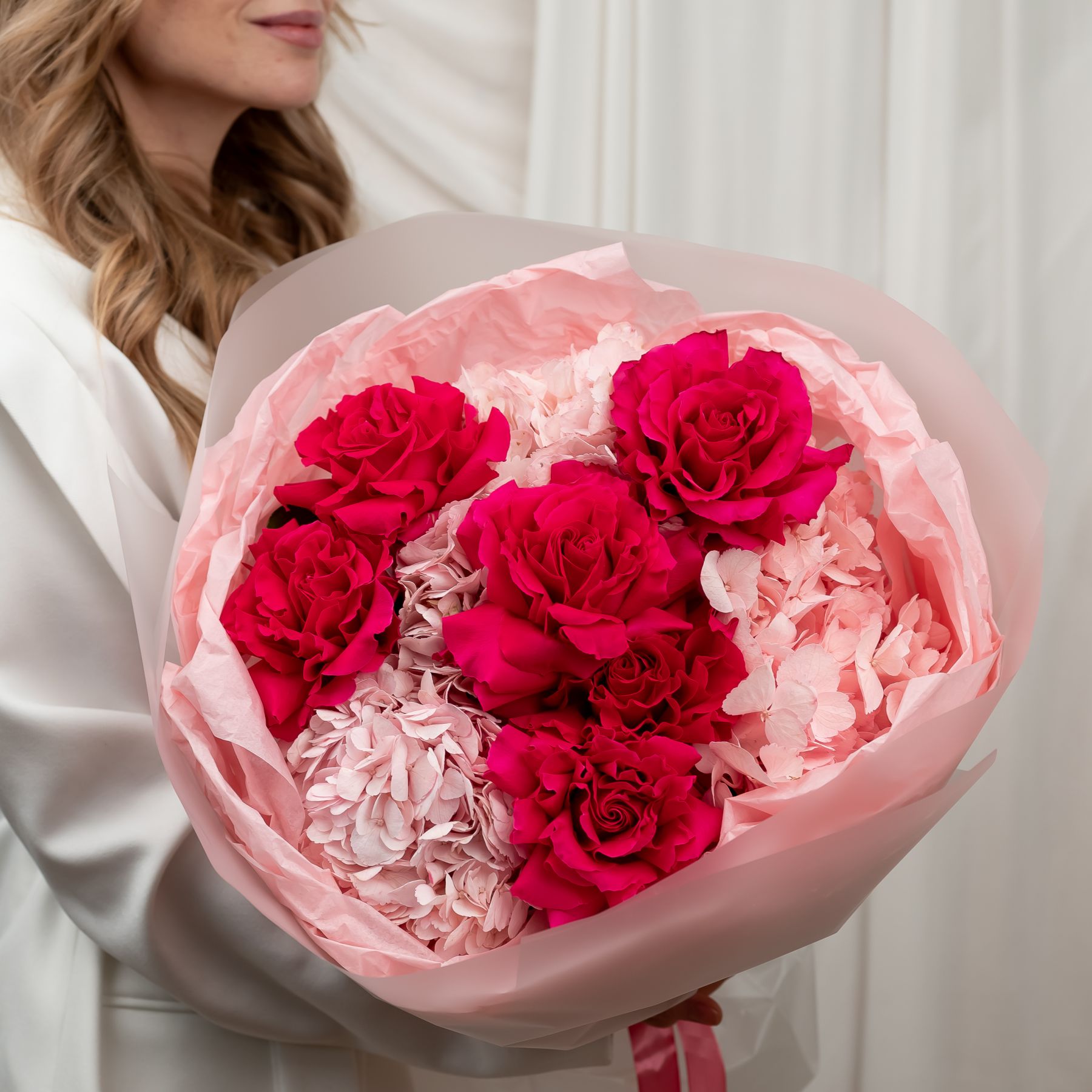 французская розовая роза - 6 шт