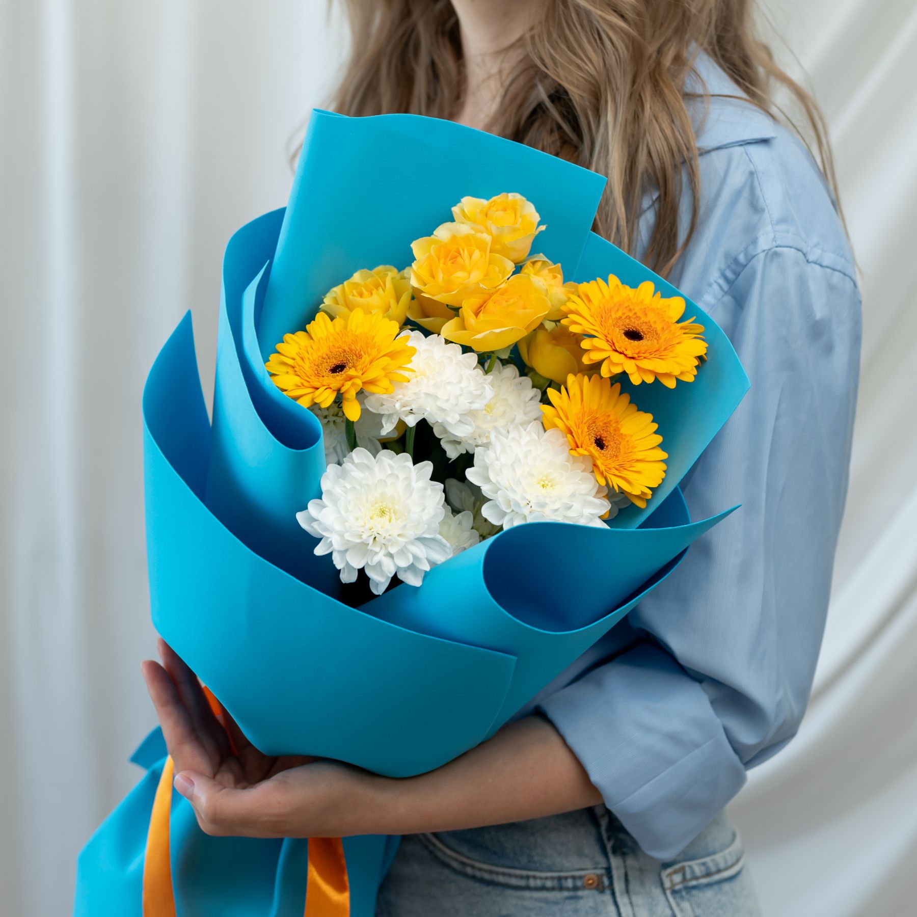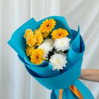 Алтай хриза - 1 Кустовая роза - 1 Гербера - 3 Упаковка - 1