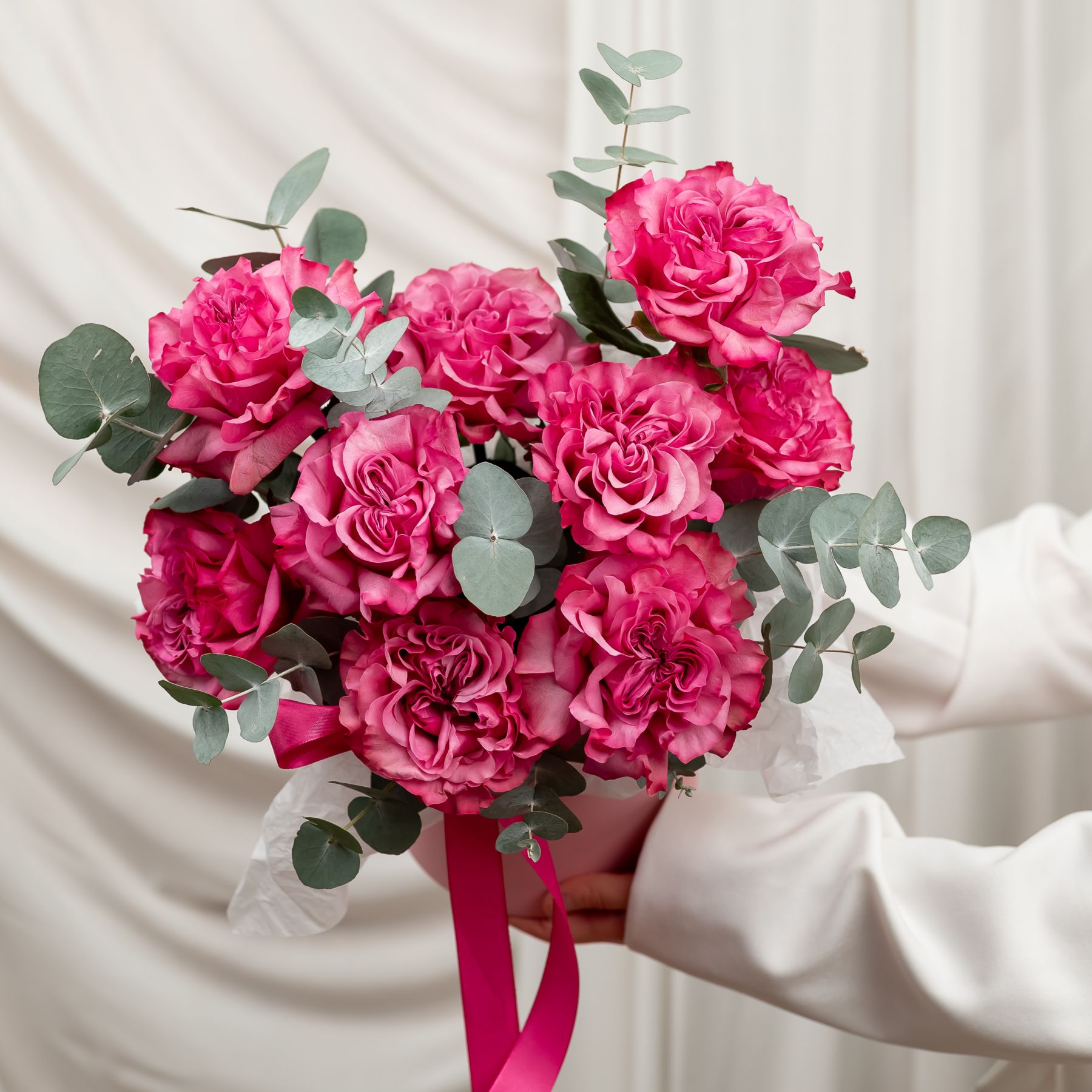 Состав: роза кантри блюз - 9 шт эвкалипт - 5-6 веток шляпная коробка - S